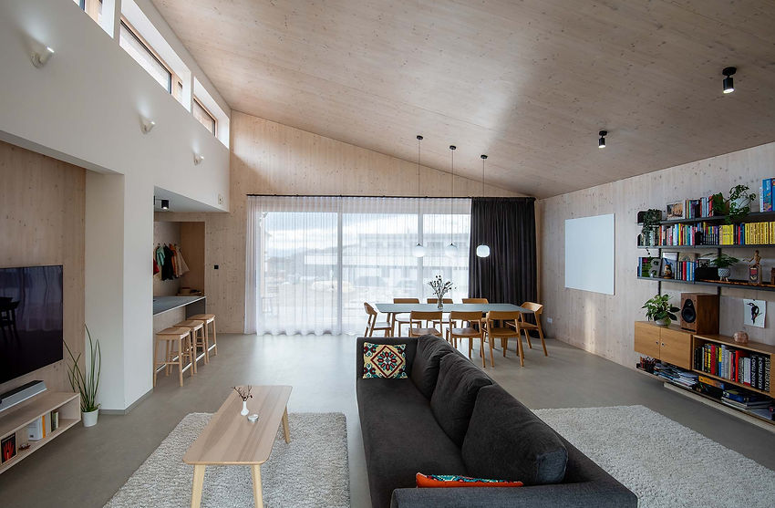 Základy tohto domu boli položené v roku 2022 a výstavba bola dokončená v roku 2024. Výber krížom lepených drevených panelov (CLT) ako hlavného stavebného materiálu zdôrazňuje záväzok projektu k udržateľným a inovatívnym stavebným technológiám. Tieto CLT panely boli vyrobené s vysokou presnosťou v kontrolovanom prostredí továrne pomocou CNC strojov. Po výrobe boli panely prepravené na stavenisko a efektívne zmontované, čo predstavuje kombináciu modernej technológie a efektívnych stavebných postupov. Pre nás – architektov je táto presnosť kľúčová, pretože zaručuje, že výsledná stavba presne zodpovedá pôvodnému návrhu.